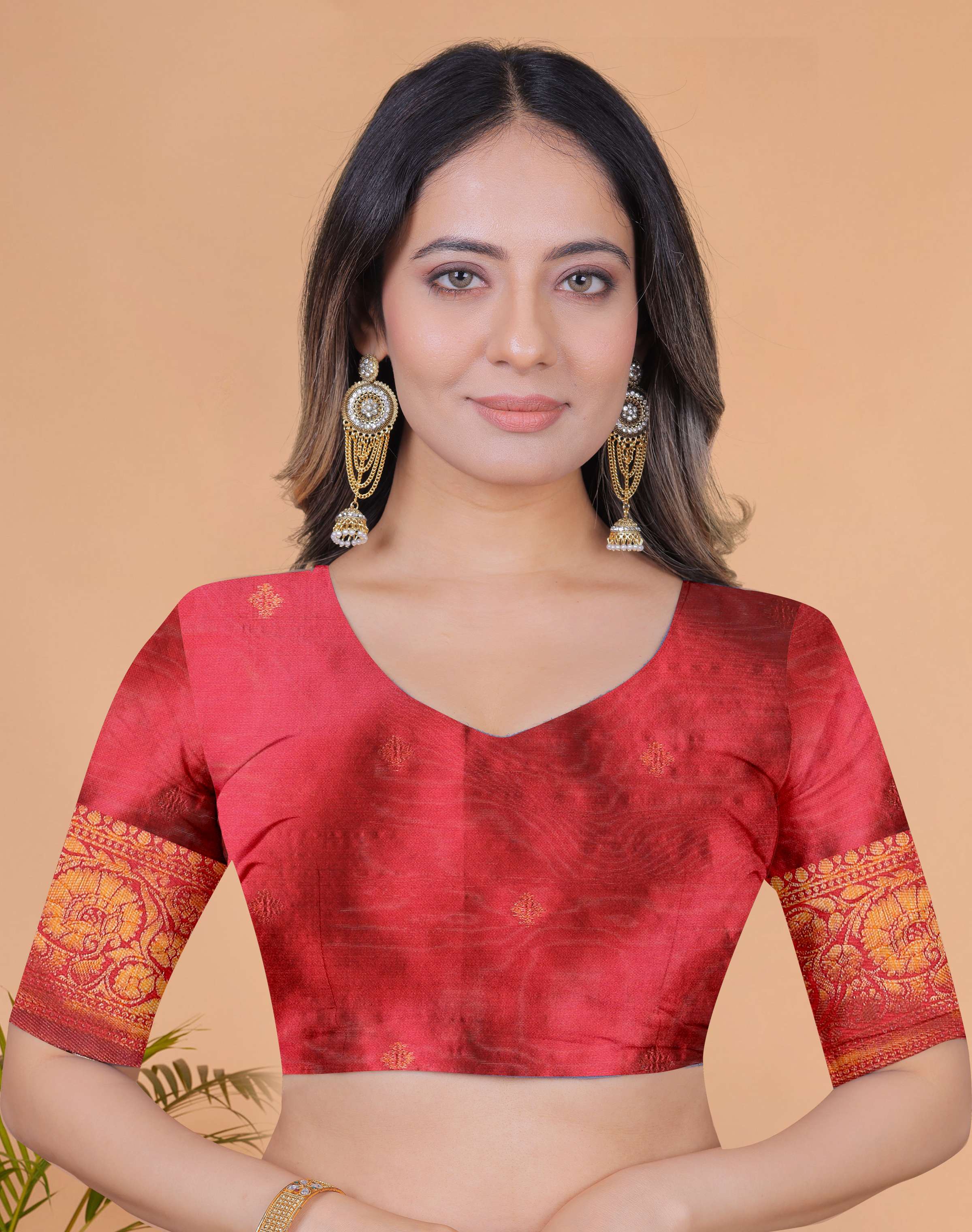 Elegant Beige-Gold Banarasi Silk Saree with Rust-Red Zari Border & Blouse | Wedding, Festival & Party Ethnic Wear