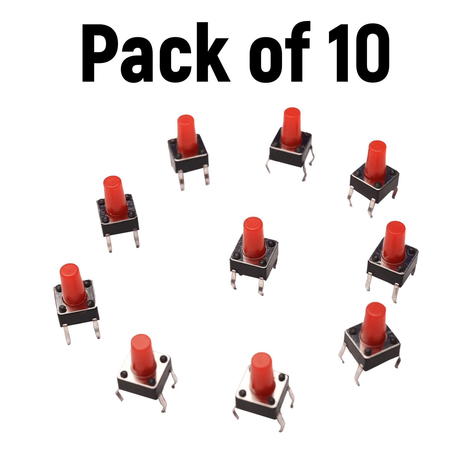6 x 6 x 8mm Tactile Pushbutton – Red (Pack of 10)